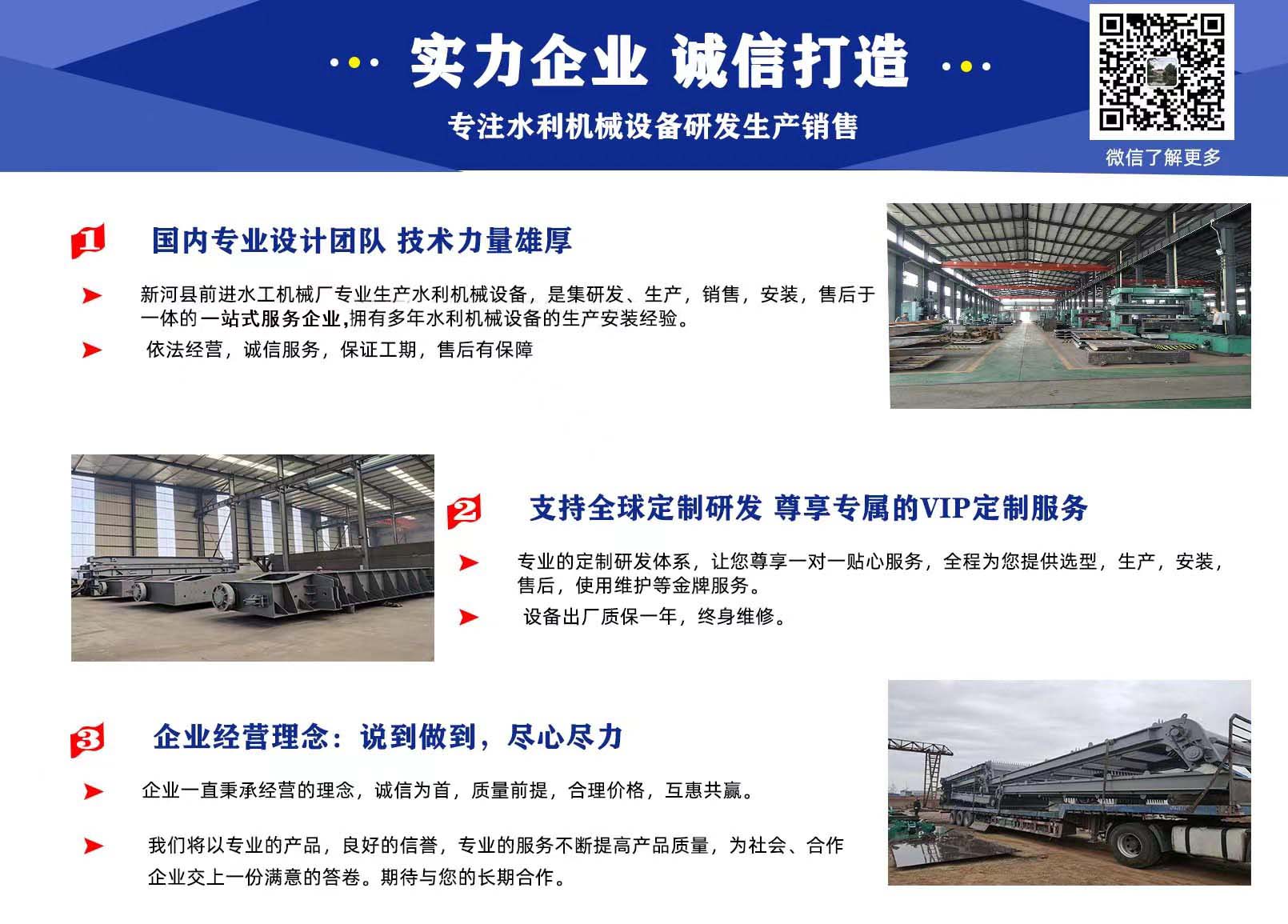 新河縣前進(jìn)水工機(jī)械廠是一家專門從事水利工程設(shè)備研發(fā)生產(chǎn)的廠家,現(xiàn)有員工228人,各類高、中級(jí)專業(yè)工程技術(shù)人員近30人,技術(shù)生產(chǎn)工人180多人。公司占地面積14674平方米。公司擁有車、鉗、刨、銑、冷作、鈑金、鑄造等,工種齊全,加工能力和技術(shù)力量雄厚,并具備理化測(cè)試手段與儀器設(shè)備。前進(jìn)水工專注景觀閘門,鋼壩,合頁(yè)壩,液壓升降壩,液壓閘門,臥倒門,一字門,人字門,液壓?jiǎn)㈤]機(jī),卷?yè)P(yáng)啟閉機(jī),螺桿啟閉機(jī),清污機(jī),除污機(jī),閘門,拍門等設(shè)備的研發(fā)與生產(chǎn),是新河水利工程產(chǎn)品行業(yè)的領(lǐng)跑者,不僅在同行業(yè)群中揭起了一次又一次的技術(shù)革新,更為水利工程企業(yè)提供了更高更大的選擇平臺(tái)。